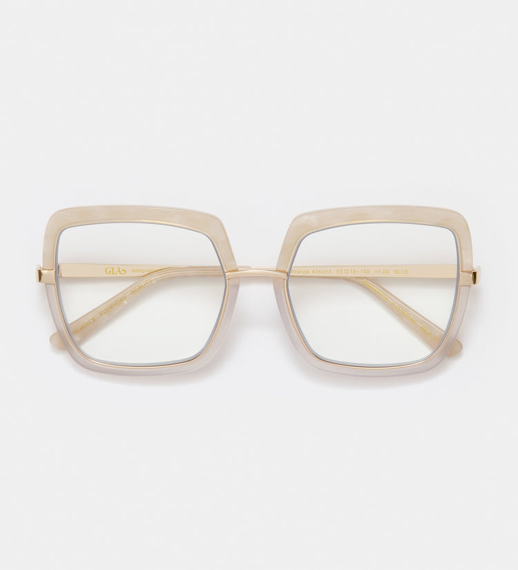 Miranda Almond Blue Light-leserne har elegante mandelformede rammer i en varm og allsidig mandelfarge som passer til ethvert utseende. Disse leserne er designet for både stil og funksjon, og reduserer blått lys og bidrar til å lindre belastningen på øynene under lesing eller skjermbruk. Et sofistikert tilbehør som forbedrer klarhet og komfort med tidløs appell.