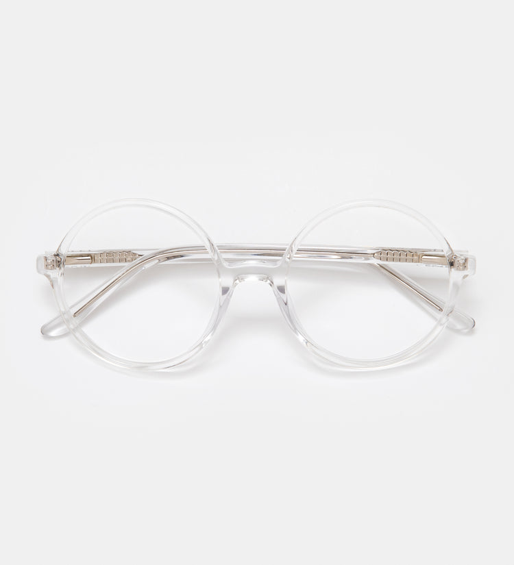 Rakel Transparent Blue Light-brillene har elegante, runde innfatninger laget av klare materialer, og kombinerer subtil eleganse med avansert beskyttelse mot blått lys. Disse sofistikerte brillene reduserer digital øyebelastning samtidig som de opprettholder en minimalistisk og allsidig stil for hverdagskomfort.